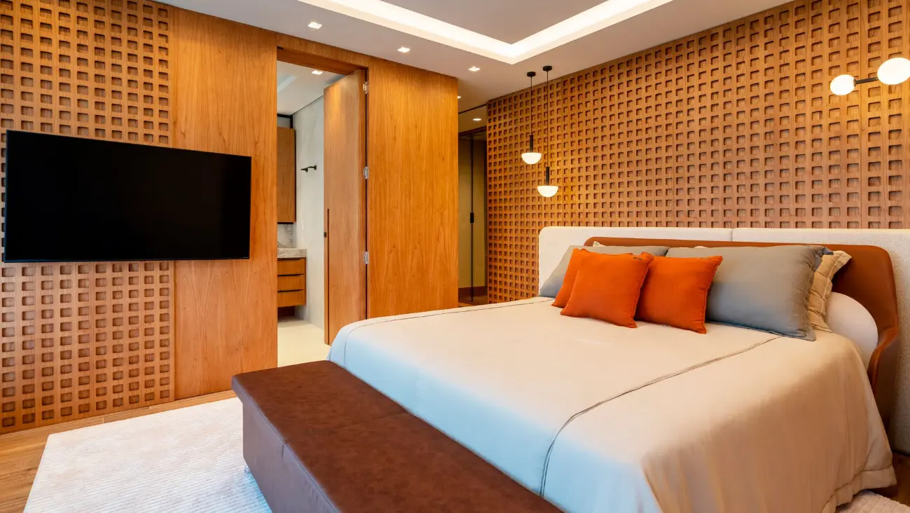 O lazer e a experiência de uso foram pensados no detalhe: sala de cinema, games e podcast, brinquedoteca e adega com sala de jogos e espaço gourmet. Para completar, automação total via internet, acesso digital, e elevador Schindler para 7 pessoas, garantindo acessibilidade nos três pavimentos.