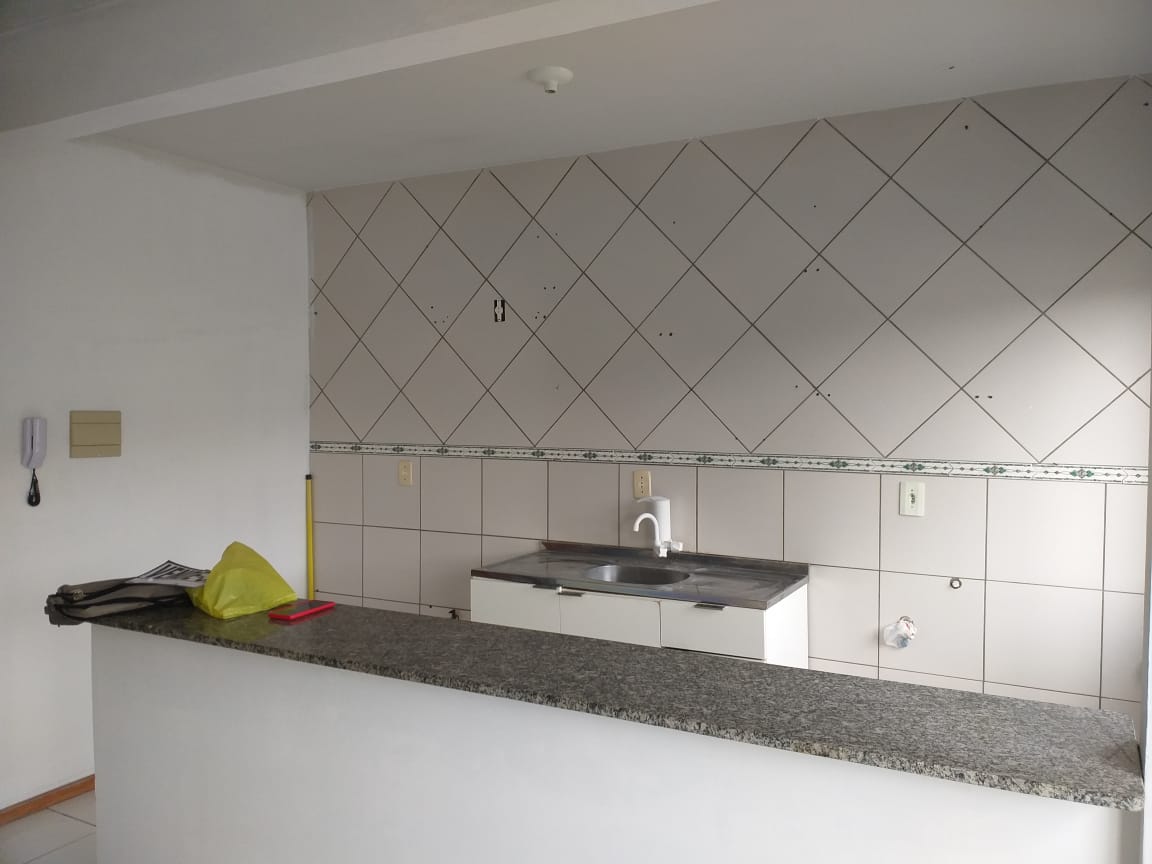 50,16 m² privativos, cozinha com bancada integrada e banheiro com box